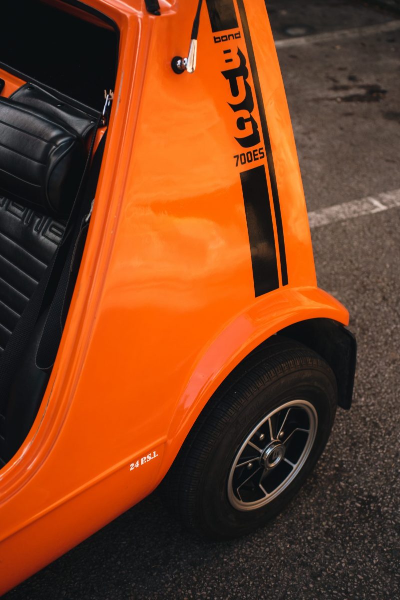 I’m almost ashamed to admit that this was my first proper look around a Bond Bug. That’s not particularly surprising when you consider that there are only 170 roadworthy examples in the UK according to How Many Left. Happily that number appears to be climbing slowly as people dig them out of garages and restore them. No doubt due to the impression they make when you see one in the flesh (actually, fibreglass).